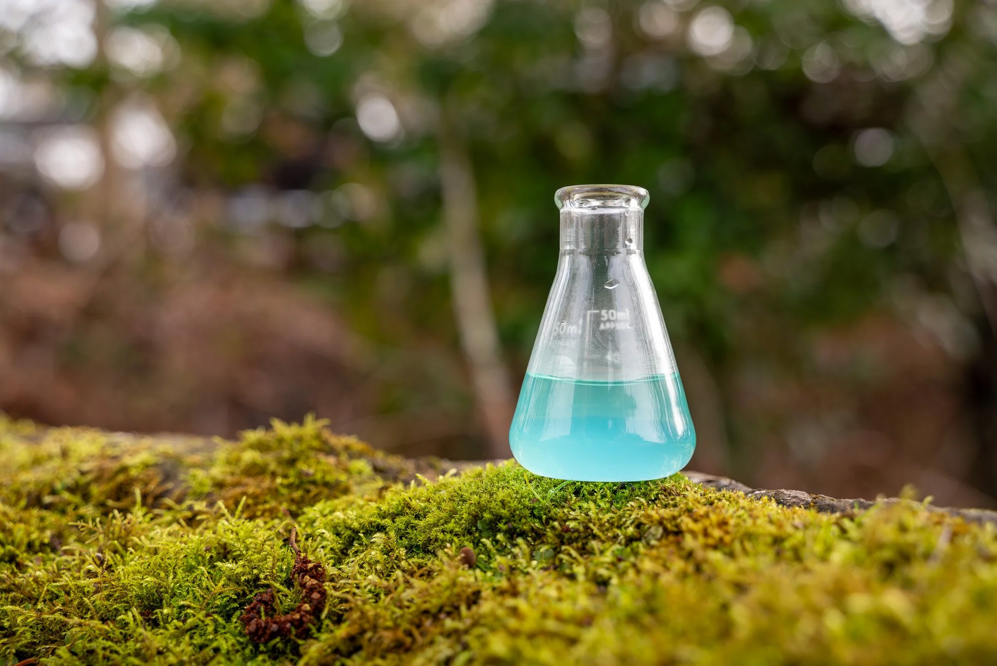 Those beakers of colored water tell a powerful story. Just 35 milliliters—barely more than two tablespoons—protecting an entire acre for up to 200 days.